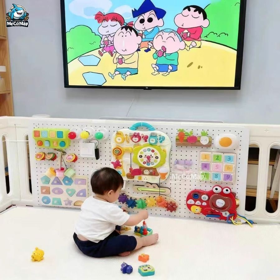 + Đối với các bé lớn hơn, Busy Board còn hỗ trợ phát triển kỹ năng sống như luồn và thắt dây, bật tắt công tác,…