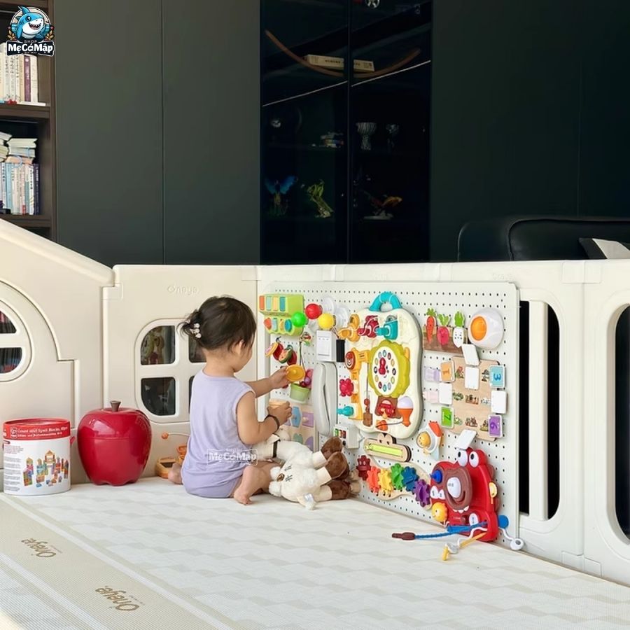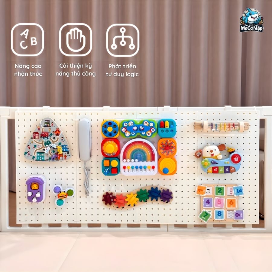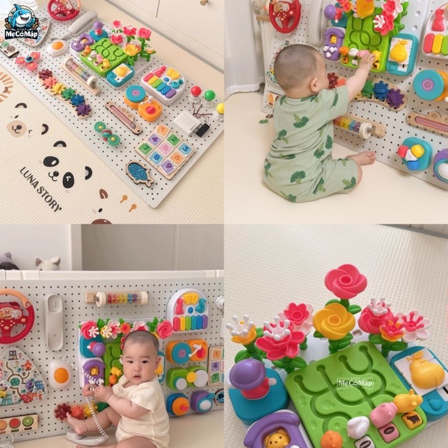 – Bảng bận rộn (Busy Board) giúp bé rèn luyện kỹ năng vận động tinh nền tảng quan trọng nhất cho sự phát triển của trẻ.