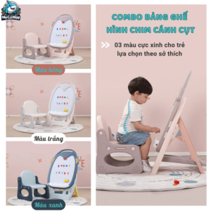 | ĐẶC ĐIỂM | – Phù hợp với các bé từ 1-5 tuổi– Bảng học có giá đỡ và kèm theo ghế ngồi chắc chắn