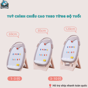 - Bảng học có từ tính, được trang bị giá đỡ và điều chỉnh được độ cao cho các bé từ 1-10 tuổi