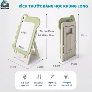 – Thiết kế bảng vẽ hình khủng long ngộ nghĩnh, đáng yêu giúp tăng hứng thú cho bé trong việc học.