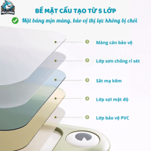 – Bề mặt bảng vẽ được cấu tạo từ 5 lớp. Nhờ đó, mặt bảng có độ láng mịn nhất định nhưng không bị lóa giúp bảo vệ thị lực của bé, chữ viết lên không bị mờ nhòe.