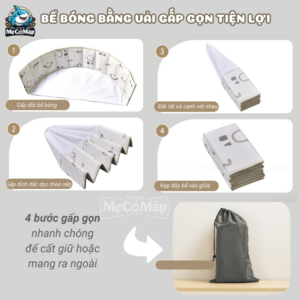 Ưu điểm lớn nhất của bể bóng vải cho bé Pakey được trang bị tính năng gấp gọn tiện lợi chỉ với 3 bước đơn giản. Nhờ đó sản phẩm có thể dễ dàng được mang theo khi đi du lịch, dã ngoại, công viên,…mà không hề tốn diện tích. Đặc biệt, bể bóng Pakey cũng không cần đến bơm, đơn giản hóa thao tác sử dụng.
