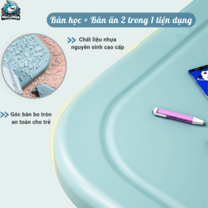 – Bàn và ghế dày dặn, thiết kế góc cạnh bo cong, nhẵn mịn, an toàn cho bé