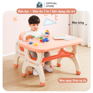 – Bàn học cho bé được thiết kế với những gam màu pastel nhẹ nhàng như trắng, cam nhạt, xanh nhạt theo phong cách Hàn Quốc sang trọng, phù hợp với nhiều không gian nội thất khác nhau. Với bộ bàn ghế 2in1, bé không chỉ cảm thấy hứng thú hơn sử dụng mà còn vô cùng đa năng, có thể sử dụng để làm bàn học, bàn ăn, bàn vui chơi, lắp ghép lego,…