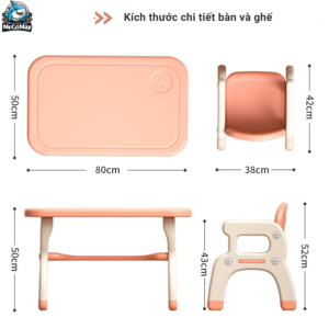 – Bộ sản phẩm gồm: 1 bàn + 1 ghế làm bàn học, bàn ăn, vui chơi.