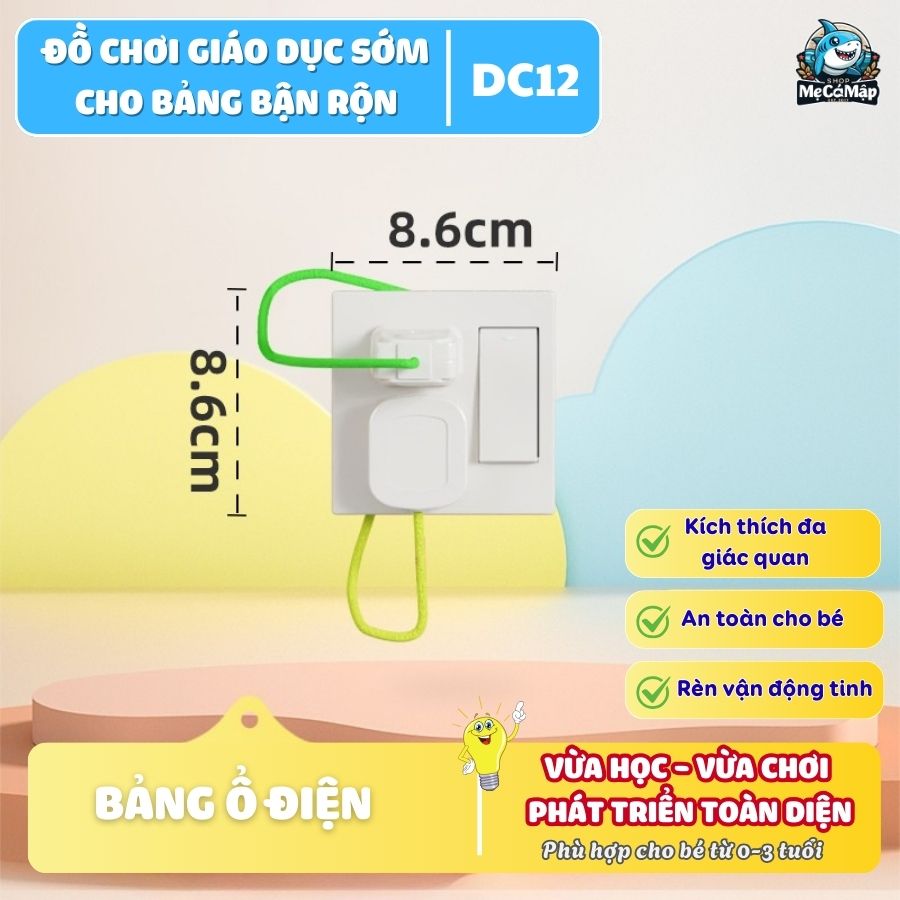 - Bảng ổ điện DC12: 8.6×8.6cm