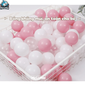 Bóng nhựa nhiều màu tạo thành nhà bóng cho bé vui chơi ngay tại nhà. Bóng làm từ chất liệu nhựa nguyên sinh an toàn, không mùi, không chất gây độc hại cho bé. Sản phẩm có kết hợp dùng cho nhà bóng, bể bóng, quây cũi nhựa đều hết ý
