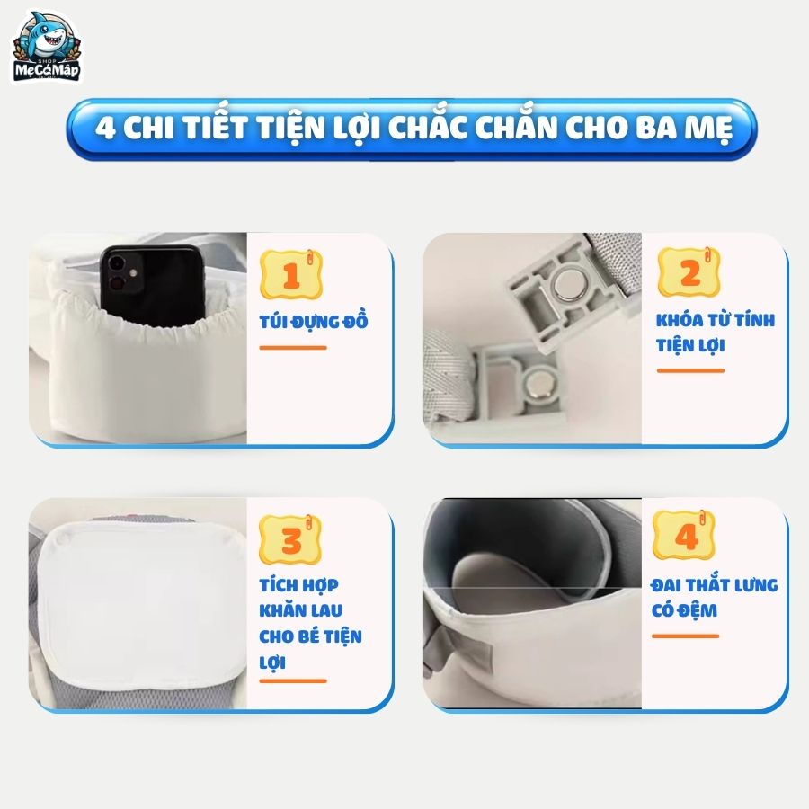 – Thiết kế tư thế chữ M chuẩn, nâng đỡ đùi hông tối ưu cho bé.