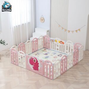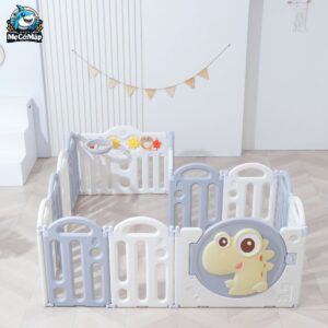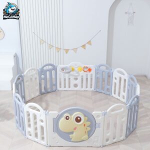 – Quây cũi nhựa cho bé khủng long đi kèm cột bóng rổ, đồ chơi ném vòng giúp trẻ tăng cường vận động, phát triển trí tuệ và vui chơi không biết chán.