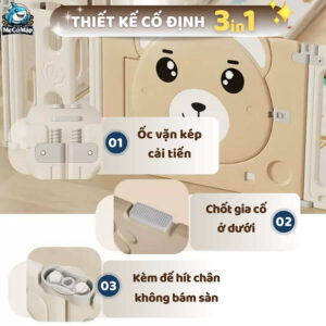 Quây cũi nhựa cho bé với hoạ tiết gấu ngộ nghĩnh có nhiều tính năng, tạo nên không gian vui chơi cũng như học tập cho bé. Đặc biệt, set quây liên hoàn giúp bé tăng cường vận động, rèn luyện thể chất một cách an toàn ngay tại nhà