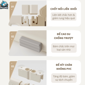| CHẤT LIỆU | – Nhựa nguyên sinh HDPE an toàn, không mùi, không bay màu, màu sắc tươi nét sáng |