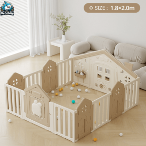 – Quây cũi nhựa cho bé có 2 tấm đồ chơi phía ngoài cao 87cm, rộng 55cm