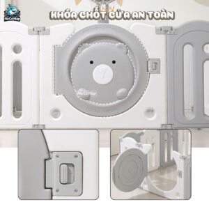 – Quây có khóa cửa từ bên ngoài, ngăn bé không tự mở cửa.