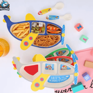 Set ăn dặm sợi tre 3 món B007 có 3 phân loại màu gồm: Máy bay xanh dương đậm, máy bay ghi, máy bay đỏ. Với hoạ tiết máy bay ngộ nghĩnh kết hợp gam màu chủ đạo nổi bật: xanh vàng và đỏ, điều này giúp các bé càng thích thú hơn trong các bữa ăn. Bộ màu giúp các mẹ có thể dễ dàng lựa chọn, đều phù hợp cho cả bé trai và bé gái.