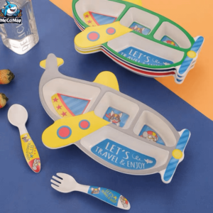 Set ăn dặm sợi tre còn được áp dụng công nghệ in màu thực phẩm và trên bề mặt được tráng một lớp sợi tre mỏng trong suốt không gây phai màu và an toàn cho bé trong suốt quá trình sử dụng.