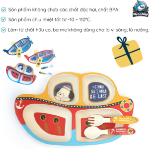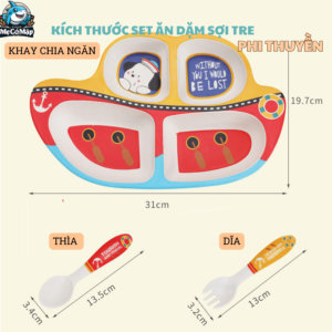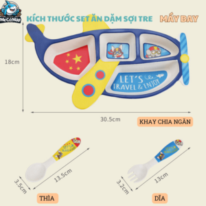 Dĩa: 12.9×3.1×1.8cm Thìa: 12.9×3.1×1.8cm – Set ăn dặm hình máy bay Đĩa: 30x18x3.5cm Dĩa: 12.9×3.1×1.8cm Thìa: 12.9×3.1×1.8cm |