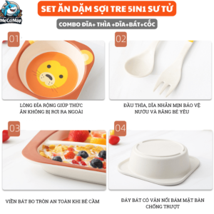 Ưu điểm sản phẩm set ăn dặm sợi tre 5 món A009 cho bé