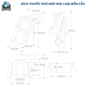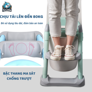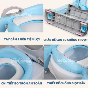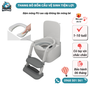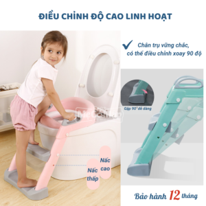 – Thiết kế thang bô đều phù hợp với các kích thước các loại bồn cầu, có thể gấp gọn tiện lợi và điều chỉnh được thích hợp với từng độ tuổi của bé.