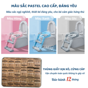 – Sản phẩm bao gồm phần nắp bồn cầu, 1 bậc thang cho bé để chân và 1 bậc thang cho bé chống trượt.