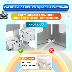 – Chất liệu: Thép không gỉ, thanh nối sắt bọc xốp, vải 300D an toàn