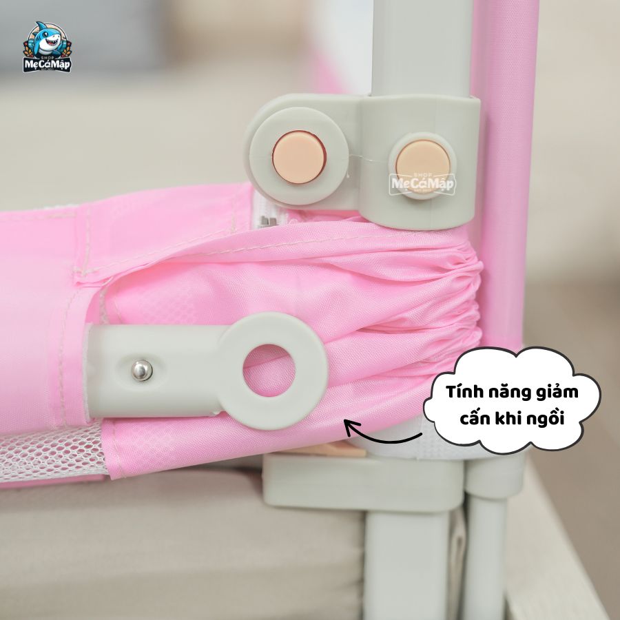 – Thanh chắn có thể hạ sát mặt đệm, giúp ba mẹ ngồi tựa lưng thoải mái, không lo cấn
