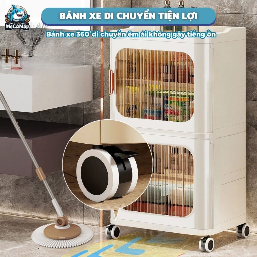 – Hệ thống bánh xe xoay 360 độ hỗ trợ thay đổi vị trí tủ nhẹ nhàng, đi cùng tay nắm bo tròn giúp người dùng luôn cảm thấy an toàn và thoải mái.