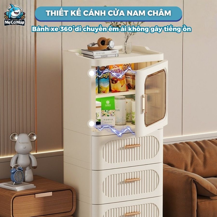 – Cánh cửa tích hợp nam châm, đảm bảo tủ luôn được đóng kín khít để ngăn bụi bẩn và bảo quản đồ dùng luôn sạch sẽ.