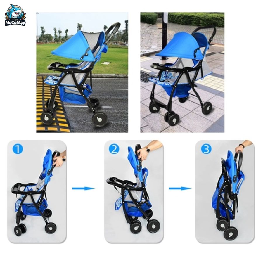 – Xe đẩy cho bé thiết kế gọn nhẹ dễ dàng mang xách đi ra ngoài, đi du lịch