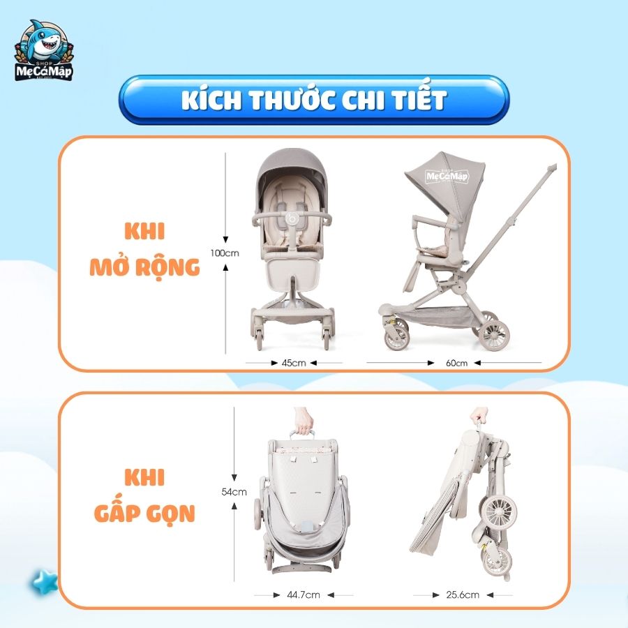 – Kiểu dáng gọn gàng, trọng lượng chỉ 6.6kg với thiết kế gập gọn giúp ba mẹ dễ dàng mang đi chơi, du lịch.