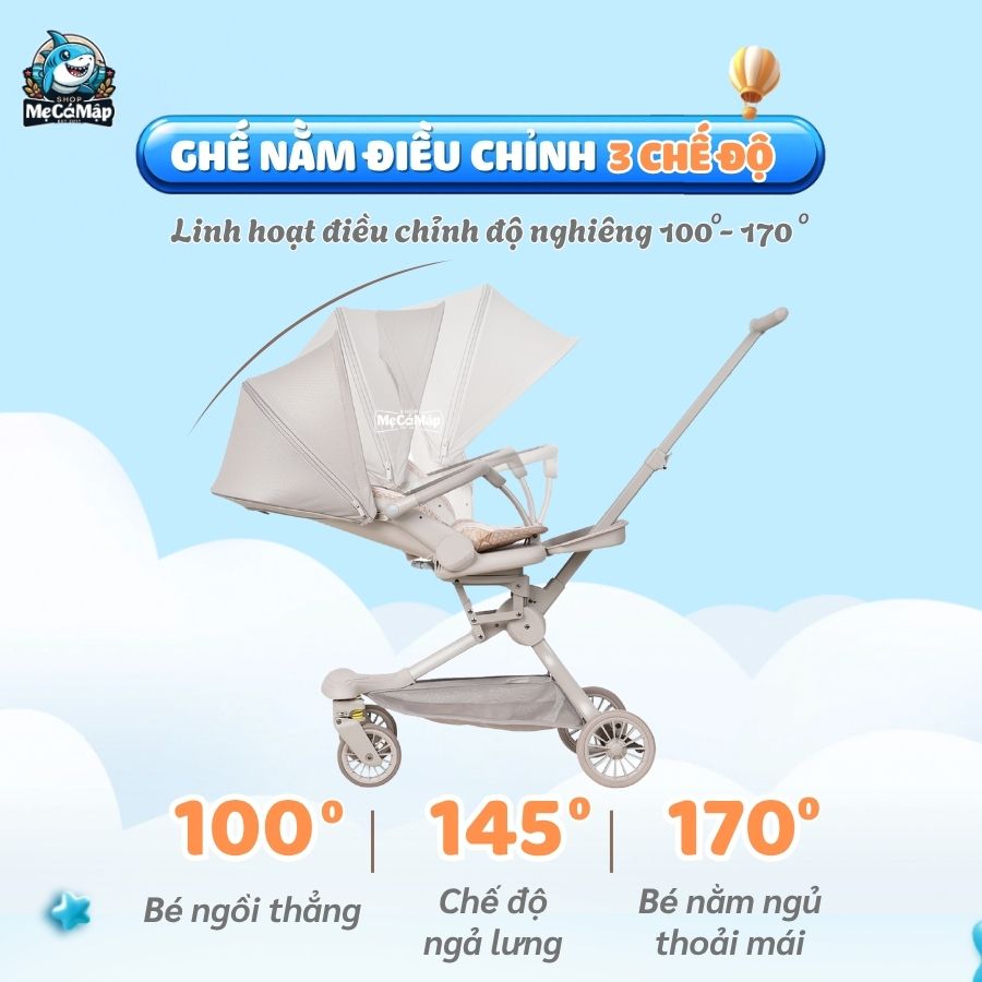 + Ghế kết hợp 3 chế độ ngả linh hoạt 100° – 145° – 170°, cho bé thoải mái ngủ nghỉ.
