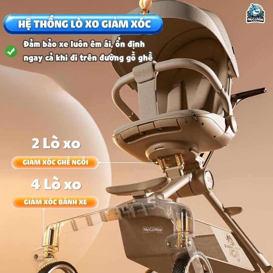 - Điểm đặc biệt nằm ở hệ thống 6 lò xo tiên tiến bao gồm giảm xóc kép dưới ghế ngồi và giảm xóc tại 4 bánh đảm bảo cột sống bé được bảo vệ tối đa và mang lại chuyển động an toàn, êm ái tuyệt đối