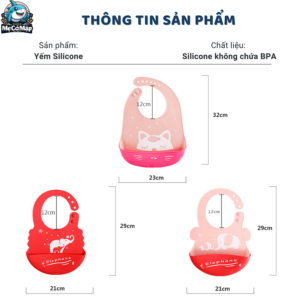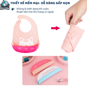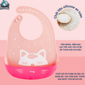 | ĐẶC ĐIỂM | – Thiết kế với form 3D ôm lấy bụng bé, tạo cảm giác thoải mái nhất cho bé khi ăn– Yếm Silicone siêu nhẹ với trọng lượng chỉ 85g giúp bé thoải mái đeo mà không gây áp lực lên cột sống cổ