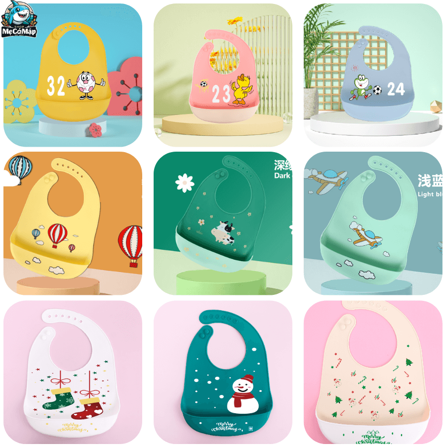 Yếm ăn dặm đa dạng về màu sắc và hình vẽ ngộ nghĩnh, thiết kế đặc biệt dành riêng cho bé yêu. Mỗi màu sắc và hình vẽ không chỉ là điểm nhấn thú vị, mà còn khuyến khích bé phát triển thị giác và khám phá thế giới xung quanh.