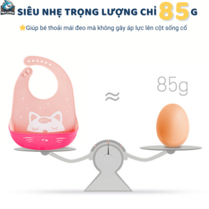 Với trọng lượng chỉ 85g, yếm silicone siêu nhẹ giúp bé đeo mà không gây áp lực lên cột sống cổ và vai. Điều này không chỉ giảm căng thẳng về trọng lượng đối với bé, mà còn giúp bé cảm thấy thoải mái trong suốt thời gian ăn uống.